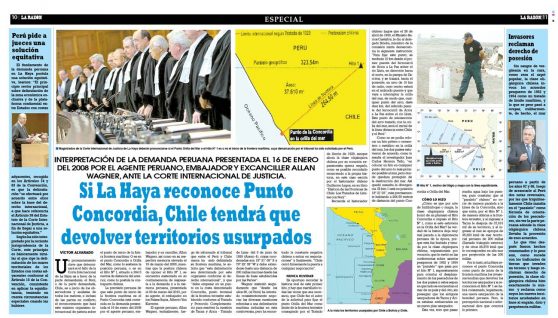El Diario La Razón, de Lima, publica hoy lo que se puede leer en la imagen adjunta referente al fallo que pende del Tribunal de ...